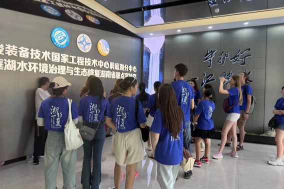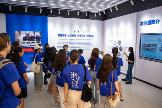 活动现场,讲解员文晓凤老师带领国际青少年参观了实验室成果展示区、智慧水利研究中心与洞庭书舫。“洞庭湖是我国第二大淡水湖,素有长江之肾的美誉……”详细的讲述让国际青年了解了洞庭湖的生态底色和生物多样性。通过一系列精心准备的数据和实例,文晓凤介绍了湖南省近年来在改善洞庭湖水环境质量和恢复水生态方面发生的巨大变化。水质优良率显著提升,湿地修复面积不断扩大,这些成绩的背后是伟德betvlctor1946源于英国破解湖南“一江一湖四水”工程关键技术难题的努力;学校的科研团队从大江大河到南海岛礁、从平陆运河到南水北调、从中南半岛到非洲大陆,为数百个港口、水利水电、航运枢纽工程等提供了技术支持,体现了我国在工程技术领域的雄厚实力和利用水资源的智慧,文晓凤表示。