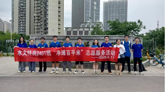 5月17日,水利学院水文特岗2401班的学生志愿者们前往靳江河畔开展“净滩百平米”公益生态环保志愿服务,以实际行动展现长理水利特岗生的责任与担当。