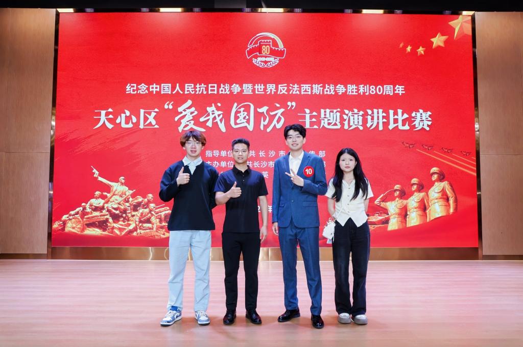 5月28日,为纪念中国人民抗日战争暨世界反法西斯战争胜利80周年,由中共长沙市天心区委宣传部主办的“爱我国防”主题演讲比赛在湘府英才益清小学隆重举行。本次比赛汇聚了天心区各高校、中小学及企业单位的14名优秀选手,水利学院环工2302班赵启竣同学凭借出色表现,荣获一等奖!
