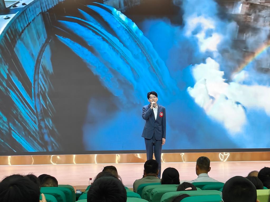 赵启竣以水利与国防的深刻关联为切入点,通过三个历史横截面生动展现了“水上长城”的国防内涵:1938年花园口决堤以水为盾阻滞日军的悲壮史诗,1952年韶山灌渠建设中“每粒稻米都是射向侵略者的子弹”的军民同心,以及2024年智慧洞庭信息化平台用科技智守江河的现代水利国防图景。他铿锵有力地表示:“水利工程的夯土声,就是国防建设的进行曲。当北斗卫星凝视江河脉搏,当智能算法预判洪峰轨迹,这就是新时代水利人的科技强军之路!”