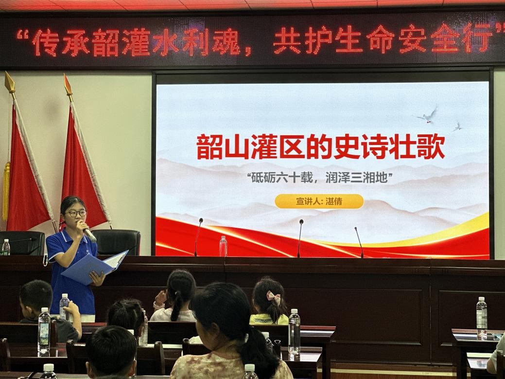 “水润初心”学生党员宣讲团立足清溪村的地缘文化背景,成功架起了一座连接韶山灌区辉煌历史精神传承与现实生命安全教育的桥梁,在服务乡村振兴的实践中展现青春担当。
