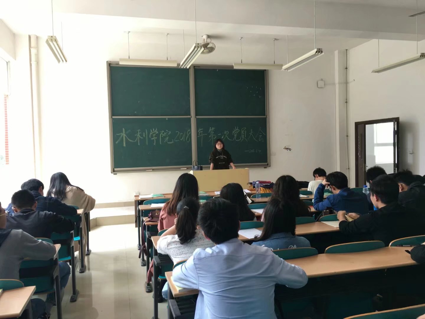 水利工程学院2018年第一次党员大会于3月15日在工三A220展开,会议由水利学院学生党总支副书记邓奕琳老师主持,包括本科生、研究生在内的全体在校学生党员参与了此次会议。