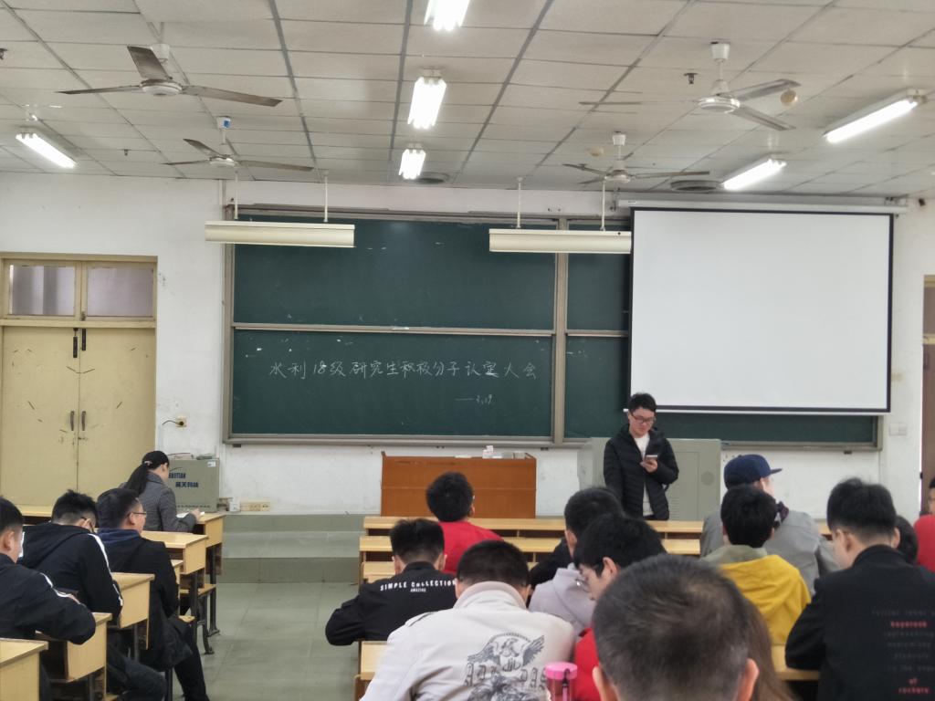 3月19日,水利工程学院2018级研究生入党积极分子认定大会在1教101教室举行。研一党支部副书记郭慧、团支书刘自强以及群众代表出席大会,大会由郭慧主持。