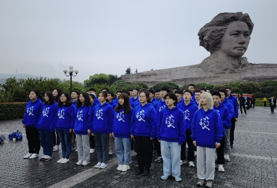 在橘子洲头青年毛泽东塑像前,同学们齐声朗诵《沁园春.长沙》,缅怀一代伟人毛泽东主席;齐唱《我和我的祖国》,诉说青年一代对伟大祖国的热爱;最后,同学们共同祝福党的百岁生日,并衷心祝福祖国越来越繁荣昌盛、中国共产党越来越强大。