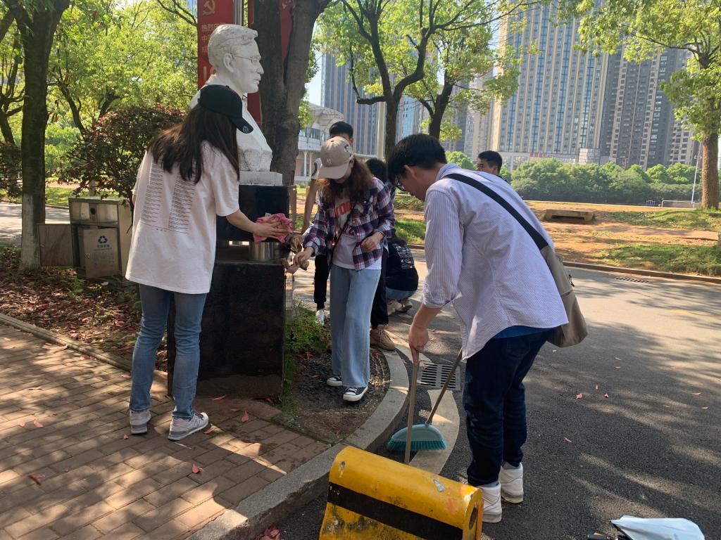 为了迎接“五一劳动节”的到来,践行中华民族传统美德,培养热爱劳动的实践精神,增强劳动意识和劳动能力,5月1日水利学院20级研究生直属党支部和第37期入党积极分子开展了以五一劳动节主题的雕塑清洁活动。