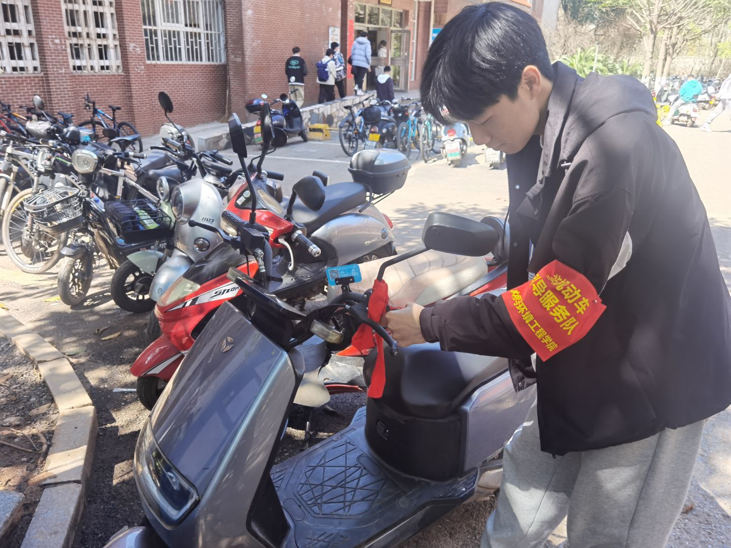 基于第一学期工作总结反思,“水利先锋行动”工作体系逐步完善、工作安排井然有序。在开展过程中,由学生入党积极分子组成的工作小组认真引导同学将电动车停放到规定位置并摆放整齐,并提醒其严格按照《关于开展电动自行车专项整治的通知》要求在指定位置悬挂合法有效的号牌、驾驶乘坐学生均需佩戴安全头盔,自觉遵纪守法、文明行驶。