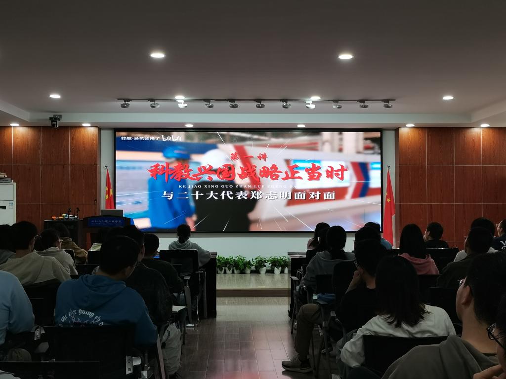 活动伊始,全体成员共同观看了纪录片《敬礼!我的党——科教兴国战略》、《科教兴国战略正当时——与二十大代表郑志明面对面》以及新华网《这就是中国青年》短视频。视频重点讲述了科教兴国战略的提出背景及意义以及党的二十大代表、广西汽车集团有限公司首席技能专家郑志明深入一线,从事汽车研发,不断进行技术革新,带领团队研发出系列新产品,给企业带来巨大效益的故事。