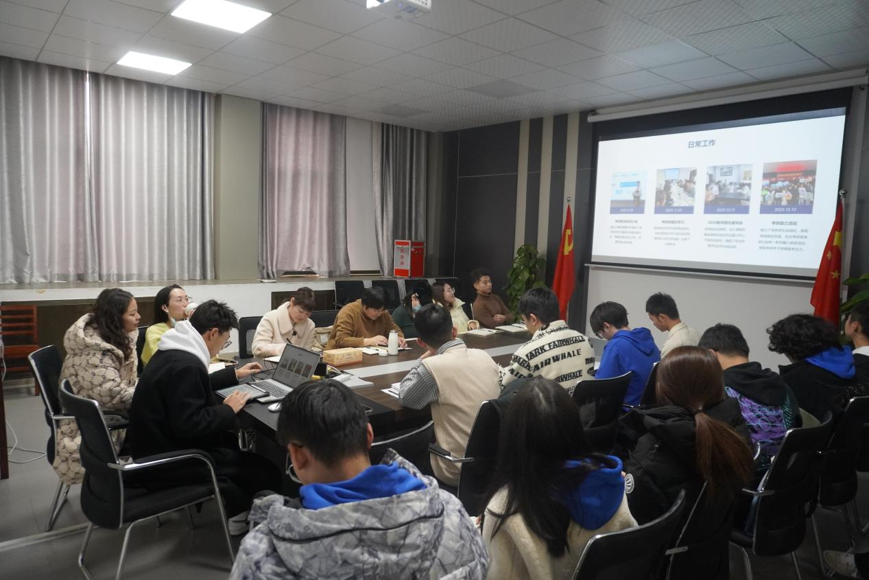 会议伊始,学生党建助理谭茜、团委学生会轮值主席潘栋栋、研究生会主席吴琼、本科生年级负责人20级王皓淞、21级柏锐、22级卿鑫宇、23级卢阳林依次从组织架构、主体工作、特色工作、取得成效、工作计划等方面进行了汇报。交流环节,参会代表针对工作中存在的问题及改进办法进行了探讨,与会老师一一进行了指导。