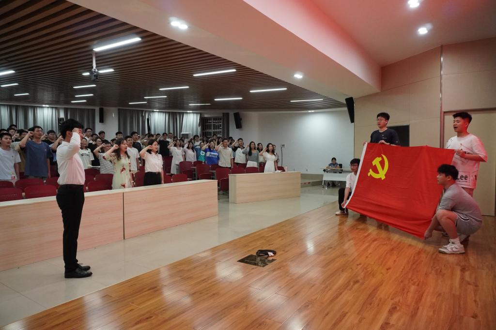 会议伊始,毕业生党员观看了廉洁教育微电影《第一粒扣子》。影片讲述了年轻党员在面对诱惑和选择时始终坚守初心、扣好廉洁自律的“第一粒扣子”的故事,向党员们展示了廉洁自律的重要性,进一步强调了忠诚、干净、担当的党员品质。随后,全体毕业生党员面向党旗,重温入党誓词。