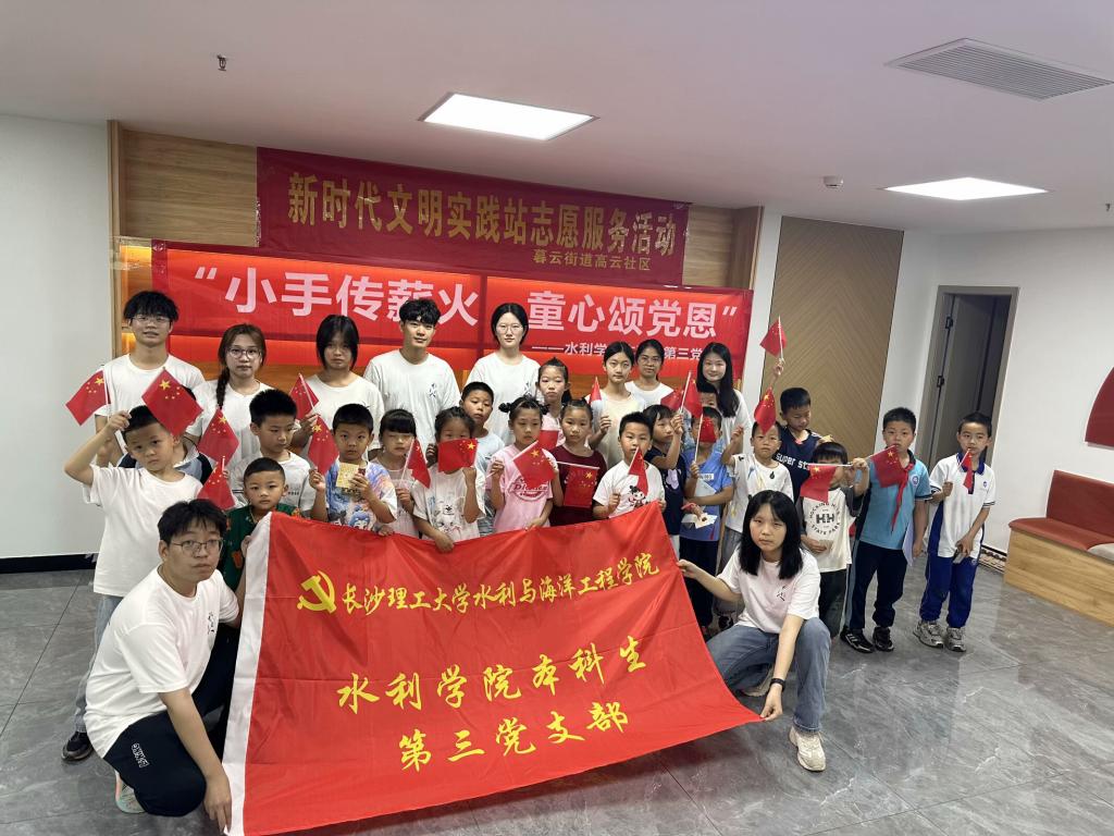 近日,水利学院分党校本科生第三党支部发展对象培训班第五小组走进高云社区,开展 “小手传薪火,童心颂党恩”主题实践活动。
