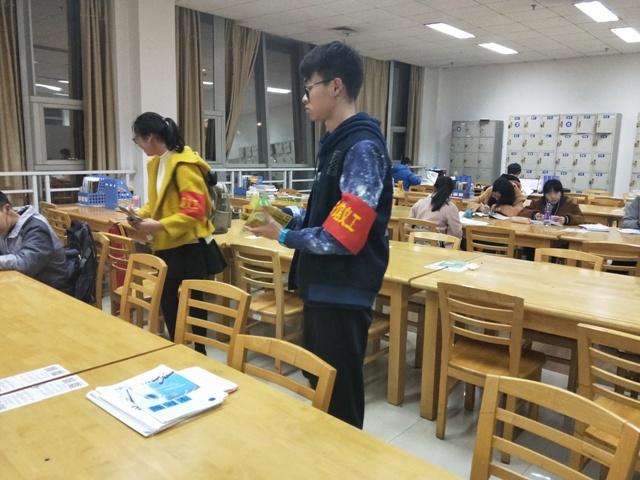 本次图书馆清理主要是针对自习室以及走道区域书籍堆砌凌乱与公共区域有杂物等问题进行开展。志愿者们分工明确,卫生清洁组将自习室桌子上的废纸屑,废水瓶以及地面的垃圾收到垃圾桶里。桌面整理组将桌上散乱的书摆放整齐,并小声提醒在自习室学习的同学注意保持自习室的整洁,垃圾随身携带,保持图书馆的整洁与干净。在大家近两个小时的共同努力下,自习室的环境变得更加的干净整洁。
