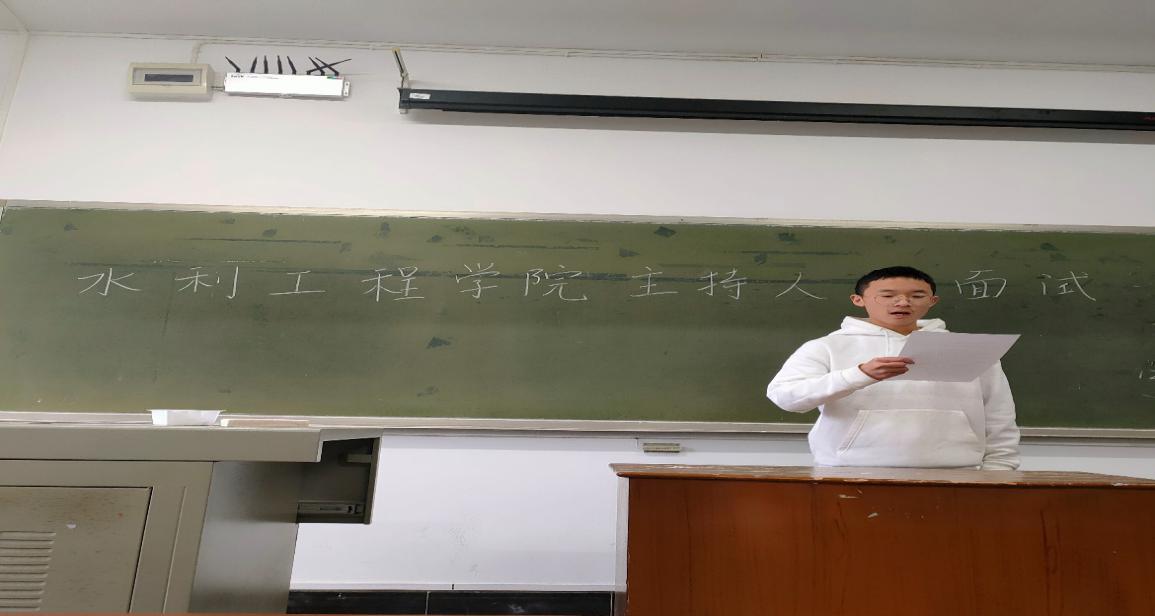12月6日,水利工程学院在金盆岭校区和云塘校区举行水利工程学院主持人队的面试工作。本次活动由余泽宇、石闻天和刘莹负责,报名水利工程学院主持人队的同学参加。