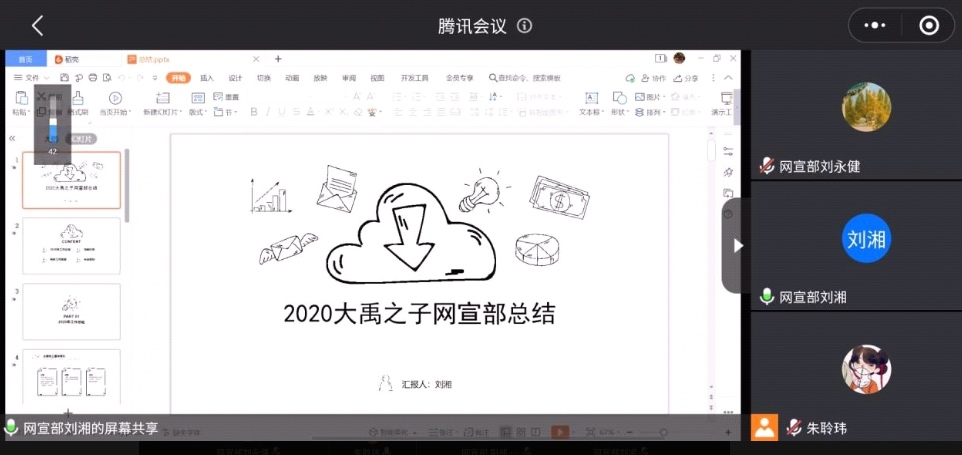 1月24日下午15:00,大禹之子青年志愿者协会社团年度总结会议在线上召开,大禹之子青年志愿者协会全体成员与会。