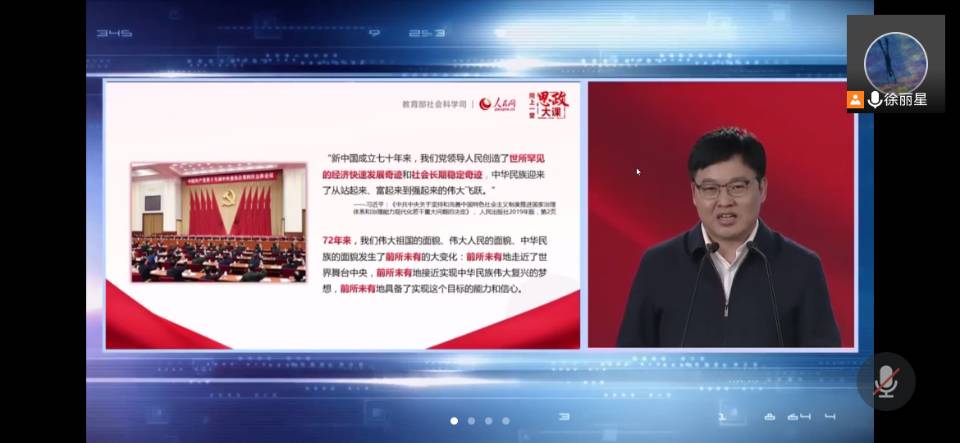 为全面落实习近平总书记在党史学习教育动员大会上的重要讲话精神和《中共中央关于在全党开展党史学习教育的通知》的部署安排,5月9日下午2:00,水利工程学院组织集中观看由教育部、社科司与人民网联合举办的“同上一堂‘四史’思政大课”之“新中国史”思政大课。第十七届第二任团委学生会主席团及全体部长参与,会议由轮值主席徐丽星主持。