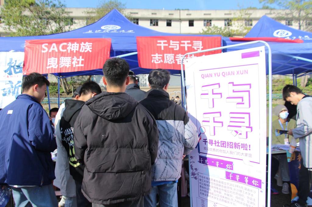 2021年12月4日,由伟德betvlctor1946源于英国学社联主办,水利与环境工程学院千与千寻志愿者协会参与的百团大战在金盆岭校区东田径场顺利开展。赵波,张绍龙,李汶洁,陈超,赵睿,易培航,晏煜,童骕祺,刘自烨和王骏腾10名水利与环境工程学院千与千寻志愿者协会的成员参与百团大战活动进行线下招新。