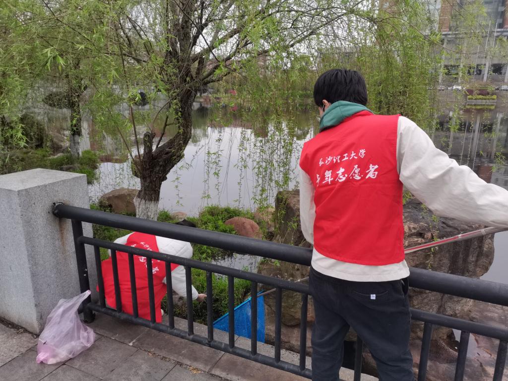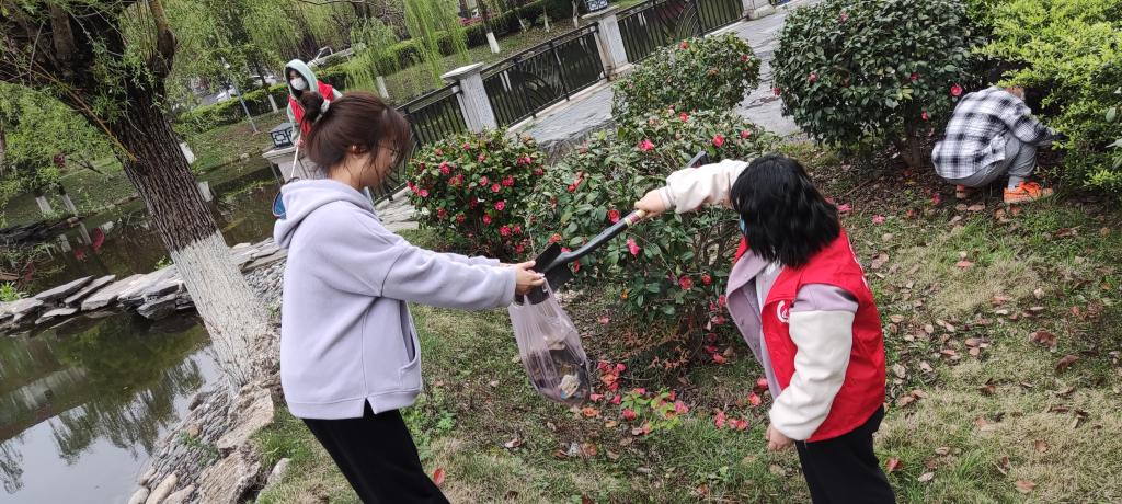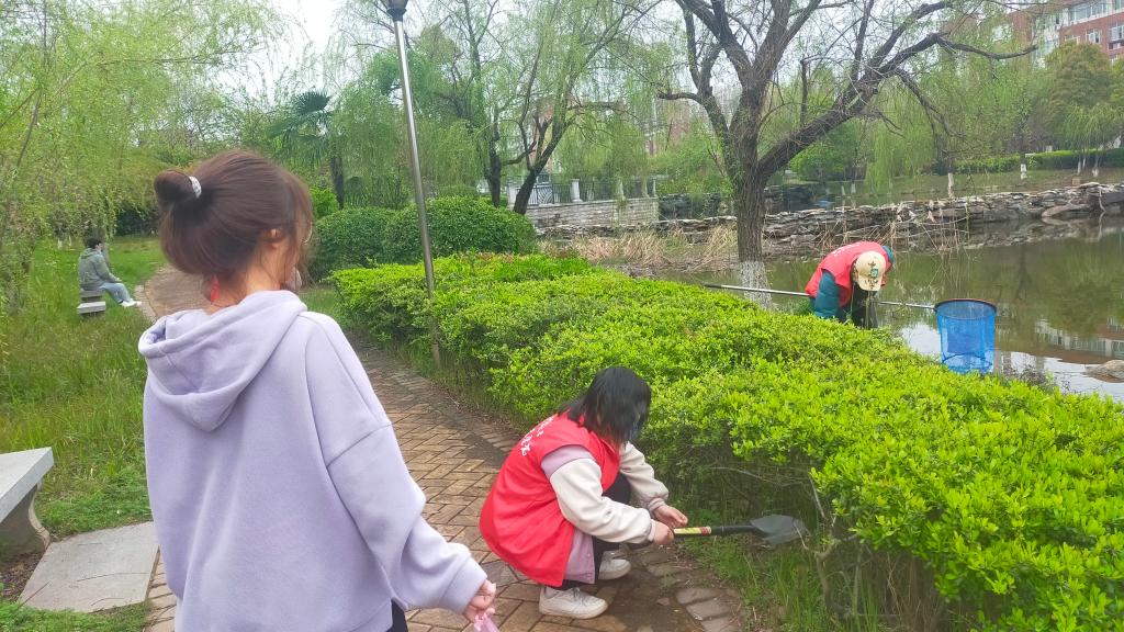 志愿者们做好自身防护后,于下午3点在云塘校区图书馆前升旗杆处集合,分组沿云影湖岸边清扫沿途废纸、塑料等垃圾,同时引导同学们不要随意乱扔垃圾,保护好云影湖的生态环境,助力世界水日和中国水周。