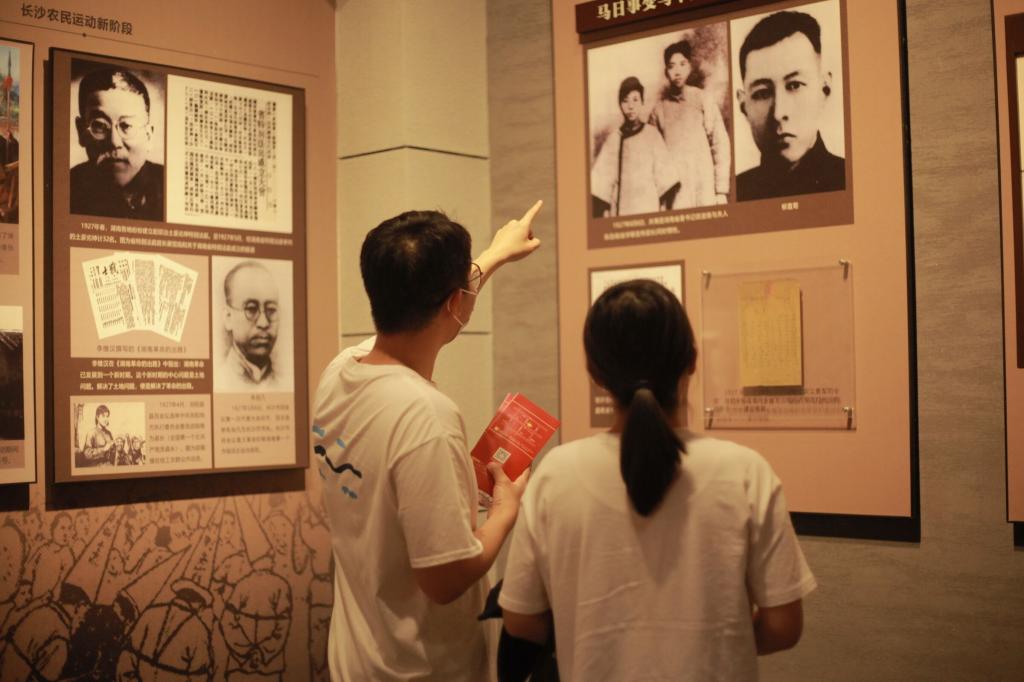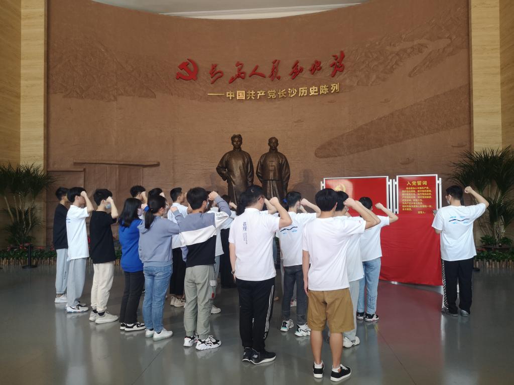 走过中共湘区委员会旧址暨毛泽东杨开慧故居、毛泽东塑像与长沙陈列大楼等区域,团员青年全面系统的学习了中国共产党在长沙地方组织的发展、壮大及团结带领长沙广大人民群众进行革命、建设和改革的伟大历程。踏进毛泽东诗词对联书法艺术碑廊,历史文化的厚重感扑面而来,“洞庭波涌连天雪,长岛人歌动地诗”,团员青年以诗词朗诵的形式追忆红色岁月,激荡爱国情怀。