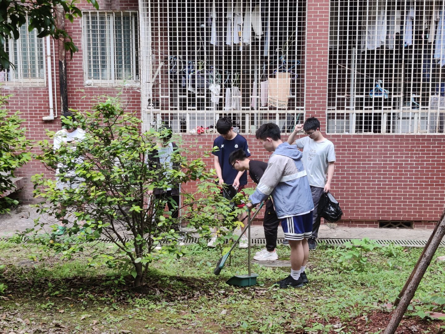 本次活动主要内容是清扫活动区域室外、内院、外围草坪上的垃圾,以及清理地表的杂物。同学们分为多个小组,有的用火钳对草丛内进行清扫,有的用扫帚等清扫工具清扫道路上的杂物。同学们耐心细致地清扫纸屑等杂物,对道路两侧草丛内的垃圾实行了集中处理。活动结束后,活动区域焕然一新。