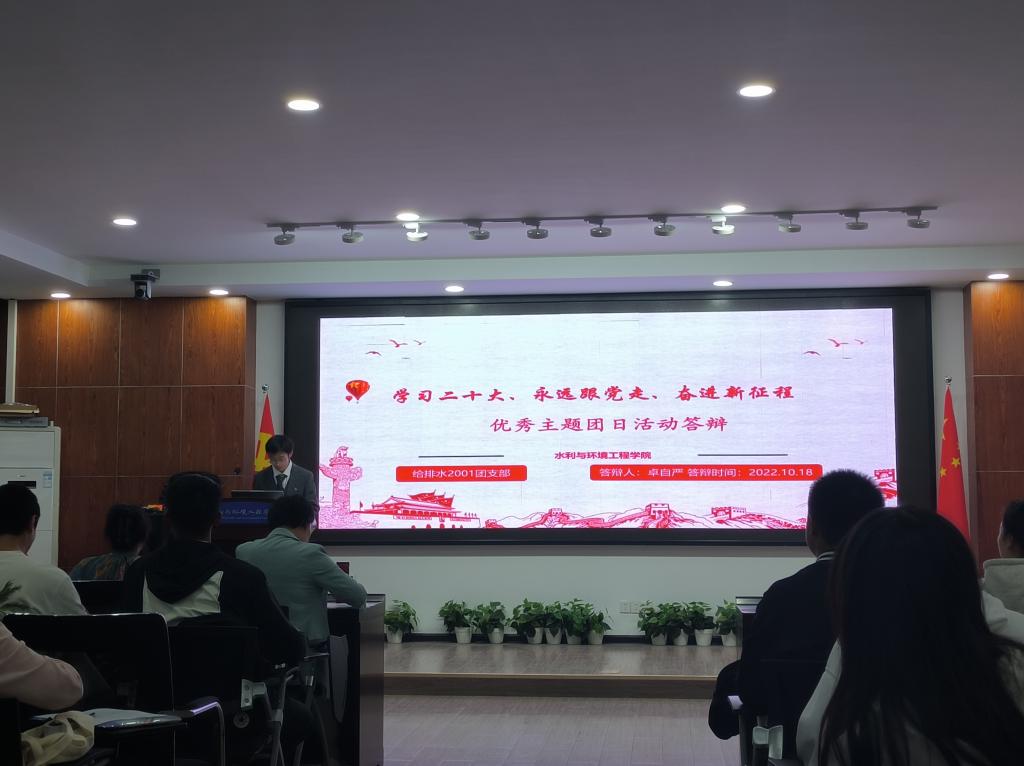 10月18日晚7点,水利与环境工程学院于云塘工三B319开展“学习二十大、永远跟党走、奋进新征程”优秀主题团日活动展示会。本次展示会由院党委副书记银波,院团委书记杜丘,辅导员甯子豪、王正博、綦丽担任教师评委,21级、22级全体班长与团支书担任学生评委。
