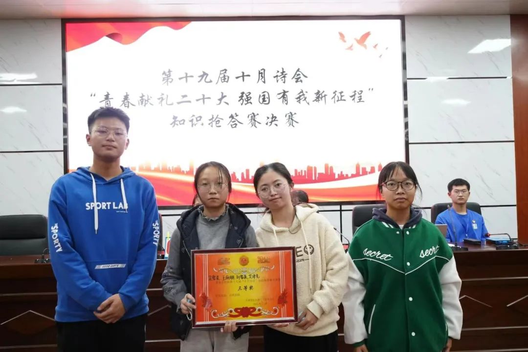 2022年10月至11月伟德betvlctor1946源于英国举办第十九届十月诗会——“青春献礼二十大 强国有我新征程”知识抢答赛。经过一轮又一轮的比拼,水利与环境工程学院大放异彩,取得三等奖的优异成绩。