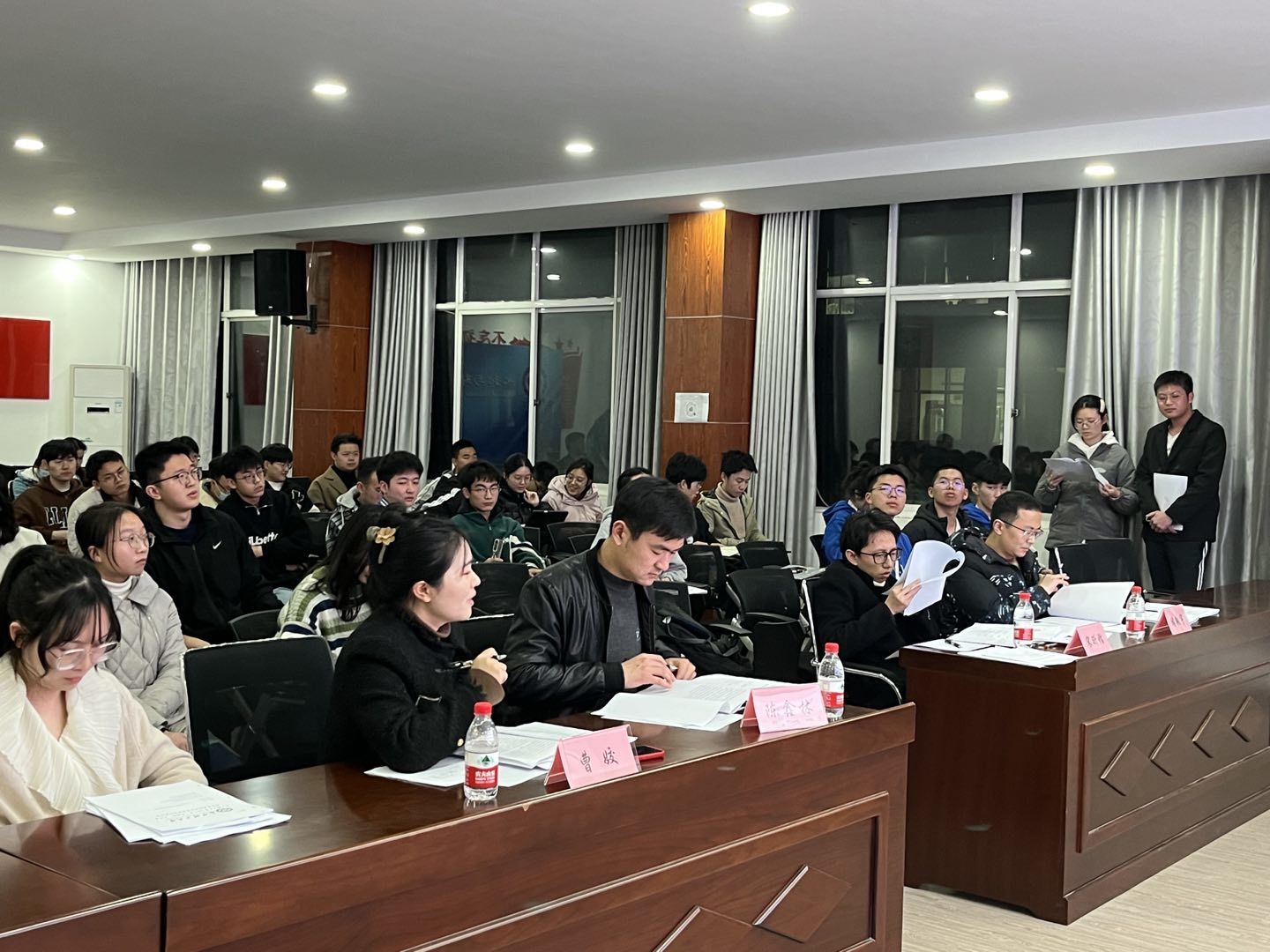 2月27日晚19:00, 2023年“挑战杯”大学生课外学术科技作品竞赛水利与环境工程学院选拔赛在云塘校区工科三号楼B319顺利举行。学院专业教师宋昕熠、游翔宇、曹姣与学院学生辅导员陈鑫林担任此次比赛的评委,共9个小组参与本次答辩。
