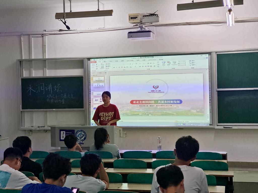 邓婕着重分享了参加湖南省青年志愿服务项目大赛的经验,作为大禹人,她将革命老区长沙、湘乡等地作为服务区,以构建“红绿蓝”志愿新模式解决老区水利设施疼痛点,该项目被10余家省级以上媒体报道30余次,团队获得省级优秀服务团队称号。她指出,团队是提供学习通道的渠道,融入团队是互相学习的良好平台,呼吁同学们积极加入团队,提高业务能力,提升专业水平。