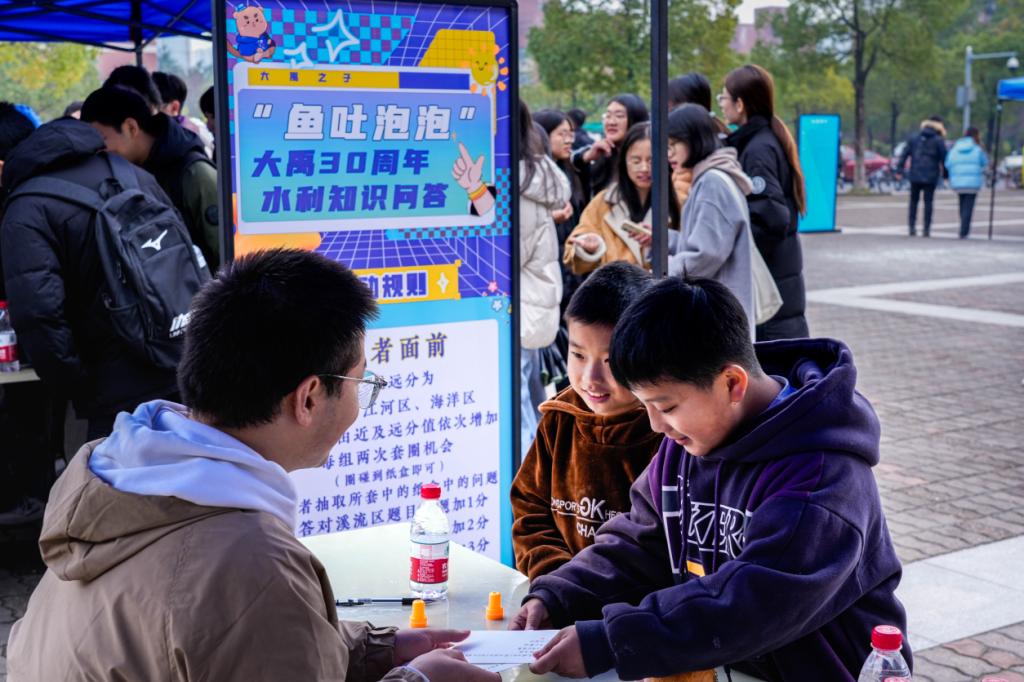 本次主题活动设置了“筚路蓝缕寻禹迹”配对连连看、“鱼吐泡泡”水利知识问答、“火眼睛睛”环保宣传图找不同等环节,通过活动带领同学学习环境保护知识、提高生态道德素质,传承志愿服务精神。“请在5分钟内完成湖南省一江一湖四水水系分布拼图”、“请问红旗渠水利风景区在哪里?”,在每一个站点志愿者为参与的同学讲解游园会站点规则,并在互动中介绍湖南水域生态环境情况,积极普及水资源保护和红色水利等相关知识。