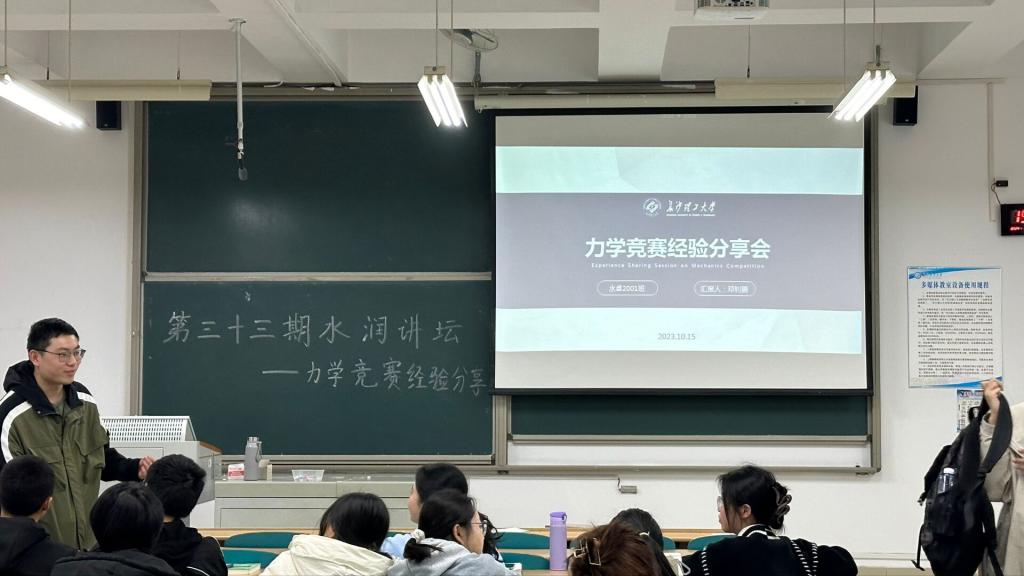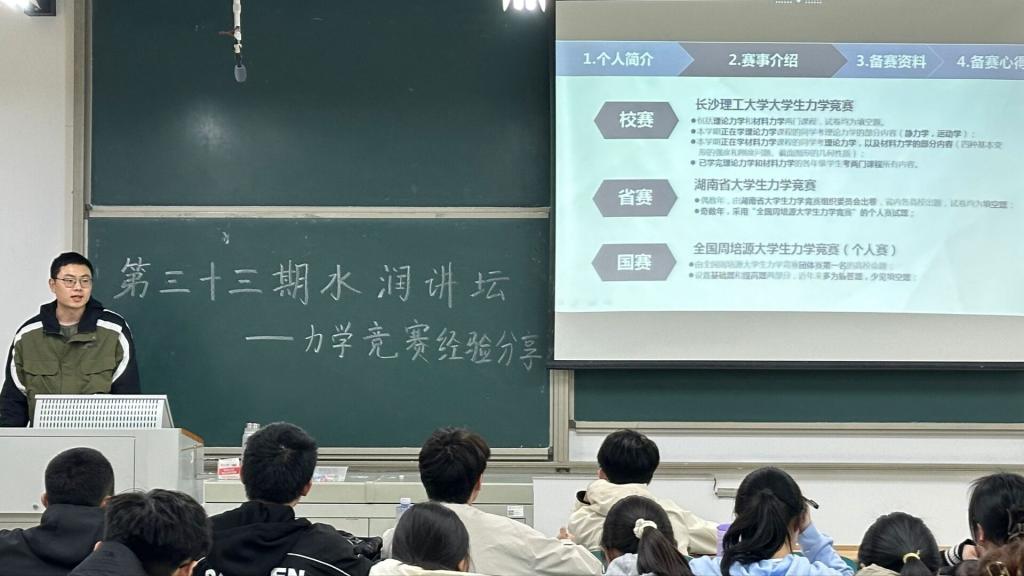 3月21日晚,水利学院在工科三号楼A208室举办第33期水润讲坛,主题为“力学竞赛经验分享”。本次讲坛邀请了港卓2201班邓钊鹏主讲,与2023级20余名同学分享力学竞赛经验。