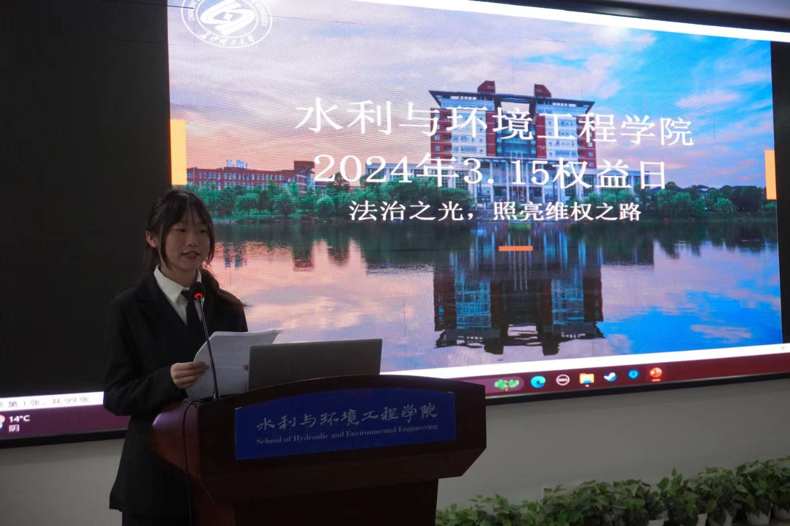 3月17日上午,水利学院在云塘校区工科三号楼B319室举行“315”权益辩论赛,2023级辅导员黄婷、轮值主席周子强及学院辩论队队长担任本次辩论赛评委。
