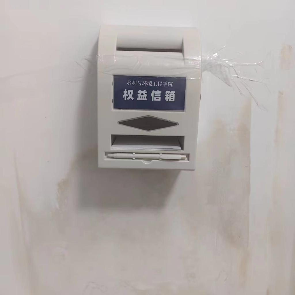 水利学院权益部在敏行轩2、3栋,行健轩1、4、6栋,弘毅轩2栋,至诚轩2、3栋等八栋宿舍楼安置新一版权益信箱,权益部每月进行开箱收集,并将收集到的问题整理分类,根据问题的性质和类别,第一时间与有关部门和老师取得联系,进行沟通、解决。