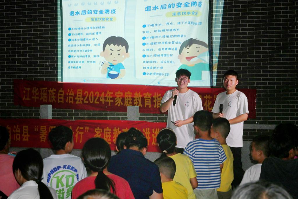 “不喝洪水浸泡过的瓶装水”、“退水后,要对洪水浸泡过的物品进行清洁和消杀”,近日,水利学院赴江华瑶族自治县“守护好一江碧水”专项实践团在涔天河镇社区居委会开展了以“防汛不松懈 安全记心中”为主题的“暑假安全行”家庭教育宣讲进乡村主题宣传活动,超过70名当地居民参与。