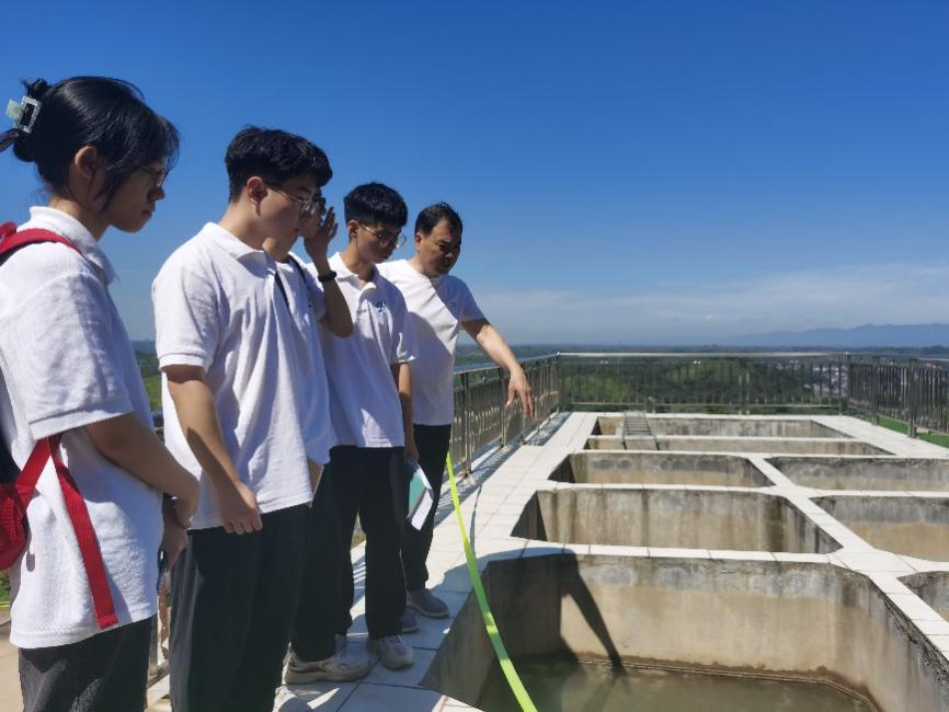 在茶陵县污水处理厂的参观学习中,污水处理厂厂长谭晓向实践团介绍了茶陵污水处理厂的工艺流程、处理规模、排放标准、未来规划等情况。实践团重点调研了污水处理的全过程,通过现场观察和技术人员的介绍,他们实地参观了污水处理厂中控室、废物清理池、氧化沟氧化池、高效沉淀池、纤维转盘滤池、二氧化氯消毒池等污水处理的相关工艺设施,从污水收集、处理到清水排放,每一个环节都体现了环保理念的重要性。