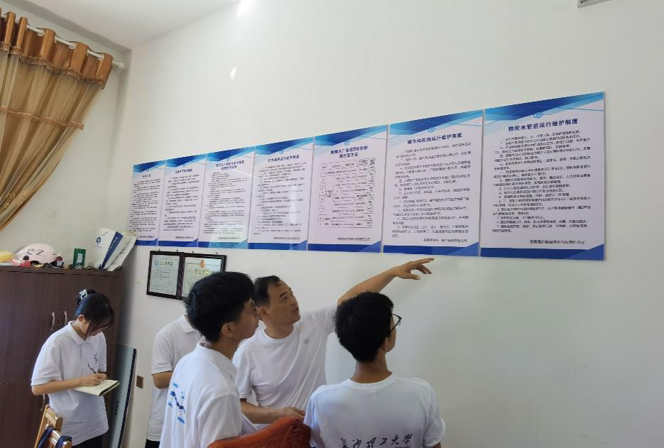 “在与水厂前辈们的交谈中,我们了解到农村饮水工作面临着诸多挑战,农村管网的复杂性与高损耗,收利率低导致的资金短缺与人才匮乏,以及季节性、节假日供水难题等,都是当前亟待解决的问题。这些问题不仅考验着水厂人的智慧与勇气,也激发了我们作为新时代水利学子的责任感与使命感。”实践团成员陈子祥说。