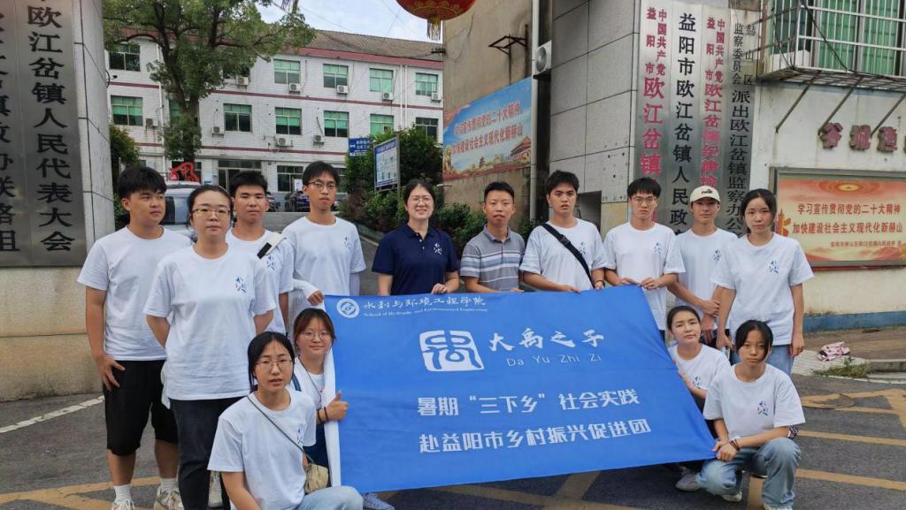 近日,水利学院大禹之子“碧波行动”乡村振兴促进团(以下简称“碧波行动”乡村振兴团)赴益阳市赫山区欧江岔镇开展暑期“三下乡”社会实践。“碧波行动”乡村振兴团通过实地考察、水质检测、开展座谈会等多种方式,深入调研当地黑臭水体治理及污水处理现状。