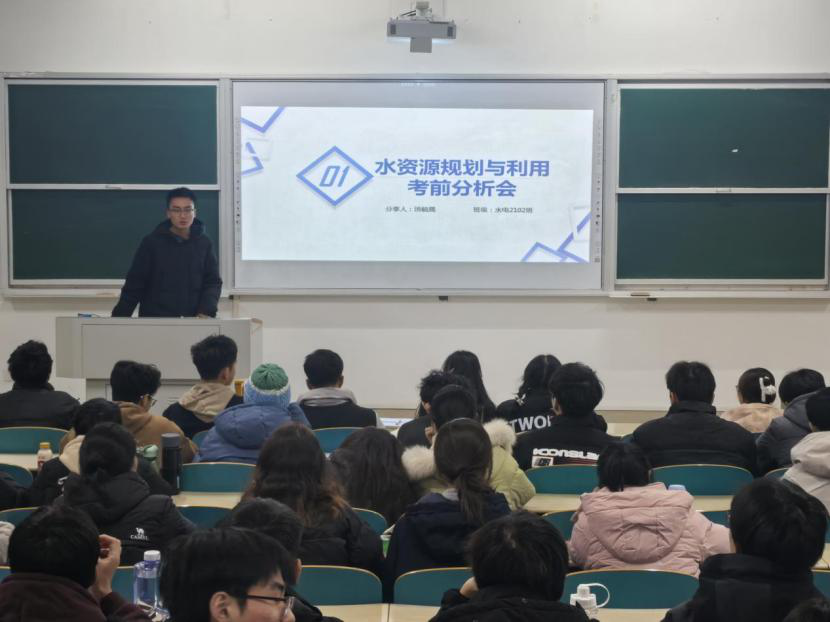 12月26日晚,水利与环境工程学院在云塘校区云综教A208室开展了“水润朋辈”课堂,邀请到金牌小讲师水电2102班汤毓晟主讲,为在水资源规划与利用课程学习上有困难的同学开启了一场考前分析会。