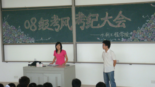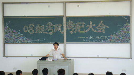 6月18日上午10:00,水利工程学院在综合楼B-202召开了关于考风考纪的年级大会,08级的全体学生参加了此次大会,会议由08级辅导员王学成老师主持。