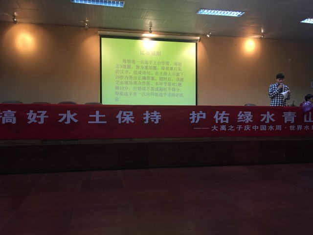3月28日晚六点三十分,大禹之子青年志愿者协会在金盆岭校区四教报告厅成功举行“水之初”水诗词大赛,出席本次比赛的有水利学院2016级年级辅导员贺志琼、院分团委书记杜丘。经过初赛的比拼,共有四组12名选手进入最后的决赛。