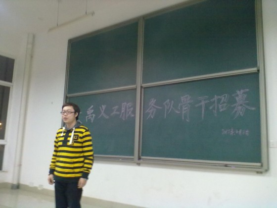 4月9日晚8点在工科三号楼A220教室,主持人亲切而又沉稳的话语,为院志愿者简单而又庄重的换届兼大禹之子义工服务队骨干招新大会拉开了序幕。本次会议旨在对上一年度青年志愿者工作进行一次全面的认识与总结,同时选举产生下一届大禹之子义工服务队的骨干力量。