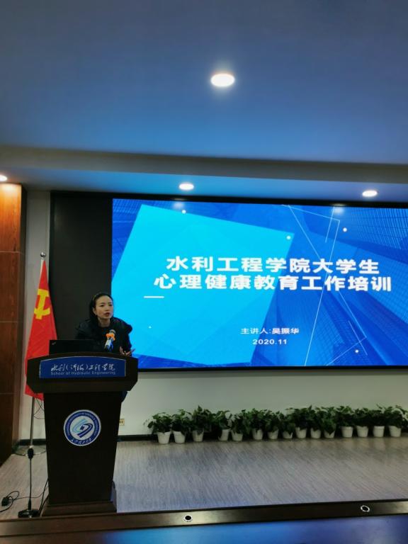 11月24日下午,水利工程学院在工科三号楼B319教室举办了心理健康教育工作专题培训会议,本次培训的主题是大学生常见心理问题的识别、干预及教育管理。学院全体班主任、研究生导师、辅导员、专业课教师参加了此次培训会议,会议由学院党委副书记吴振华主讲。