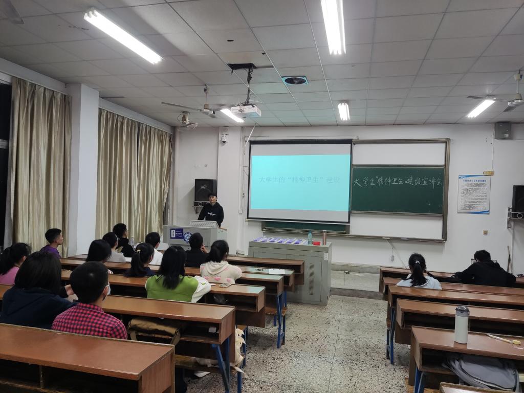 2021年10月28日,为积极维护21级新生的心理健康,科普和宣传精神卫生健康知识,水利与环境工程学院团委学生会心理部在金盆岭校区十三教600教室组织开展“双十”精神卫生宣讲会。心理部成员和21级全体心理委员参与此次宣讲会。