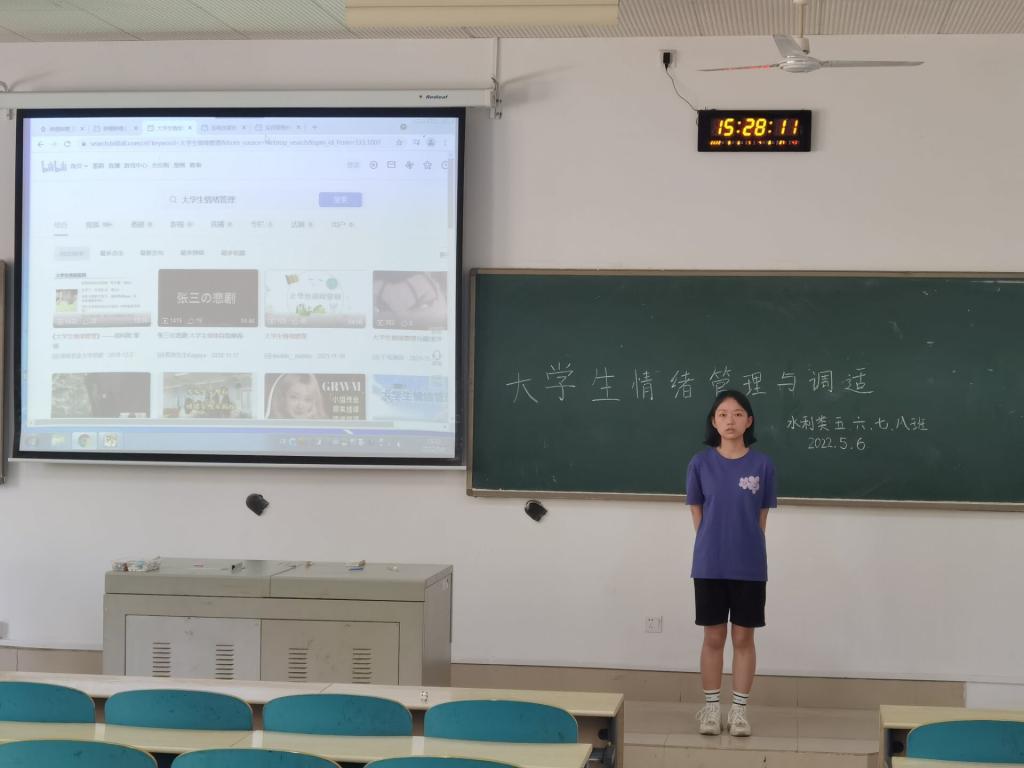 为普及心理健康知识,提升大学生健康素养,5月6日-5月8日,水利学院心理部组织全院所有班级召开“情绪管理与调适”的班级健心主题班会。