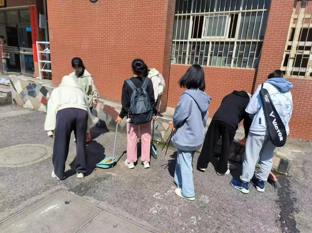 活动前期准备,由心理委员组织班委小会确定劳动实践的地点和时间。活动开始,心理委员组织好同学们分成三组,分别对行一与行六周围区域、水利实验中心楼栋及周边区域、甘怡食堂周围区域(包括云霞山)进行清扫。在劳动实践中,同学们很认真参与每一项清扫环节,所过之处,垃圾无处遁形。活动最后,同学们进行合影留念。