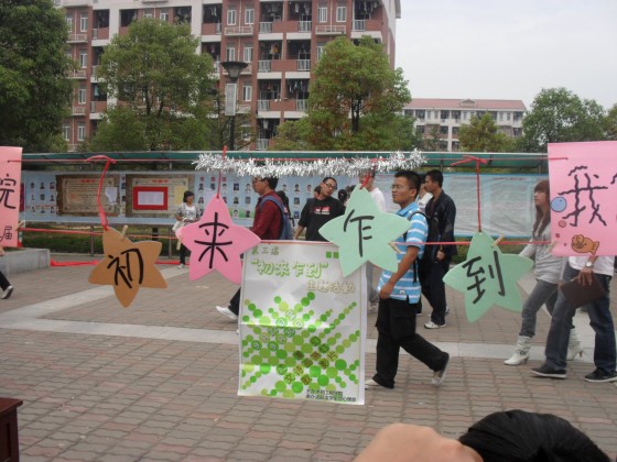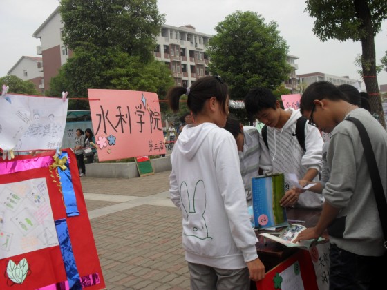 10月9日中午,筹备已久的水利学院学生会心理部第三届“初来乍到”主题活动之班级作品展,在汀香园前成功举行。活动关注新生们刚刚来到学校时的心情,收到了来自10级新生的众多欢迎和肯定。