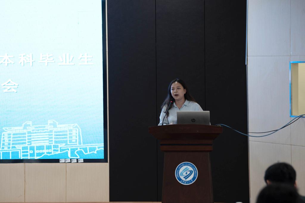 綦丽重点围绕毕业季时间安排、离校手续办理、重修考试、考场纪律及档案归档等事宜作详细说明,提醒同学们严格遵守各项时间节点,倡议毕业生文明离校。院团委基层团建部高宇阳就团组织关系转接的具体流程和注意事项进行讲解,确保毕业生党团关系顺利衔接。
