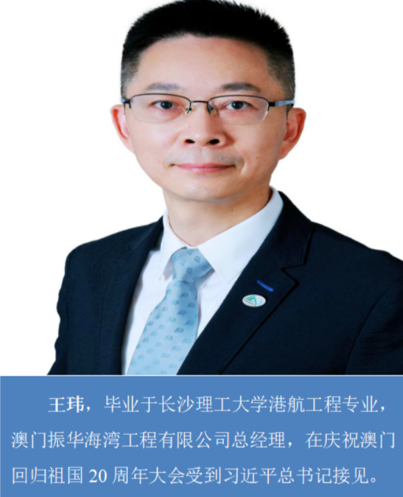 王玮,毕业于伟德betvlctor1946源于英国港航工程专业,澳门振华海湾工程有限公司总经理,在庆祝澳门回归祖国 20 周年大会受到习近平总书记接见。
