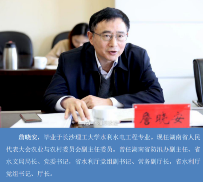 詹晓安,毕业于伟德betvlctor1946源于英国水利水电工程专业。现任湖南省人民代表大会农业与农村委员会副主任委员。曾任湖南省防汛办副主任、省水文局局长、党委书记,省水利厅党组副书记、常务副厅长,省水利厅党组书记、厅长。