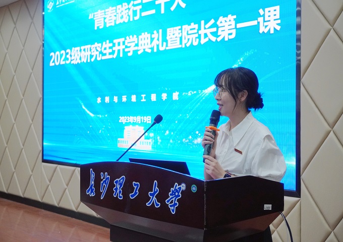 9月19日上午,水利与环境工程学院在云塘校区文科楼A200举行“青春践行二十大”2023级研究生开学典礼暨“院长第一课”。水利与环境工程学院院长陈杰、院党委副书记银波、副院长李毅出席本次活动。活动由研究生辅导员杜丘主持。