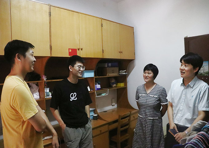 在走访宿舍的过程中,李毅一行与新生进行亲切交谈,详细了解研究生生活情况与学习规划,并嘱咐新生要做好以下几个方面.一是注意用电安全,加强安全意识,不要使用违规电器,紧绷安全阀门;二是合理规划时间,健康生活,提高学习效率,做出科研成果;三是与同学友好相处,建立良好的人际关系;四是有困难及时与老师沟通交流,寻求老师的帮助与建议。