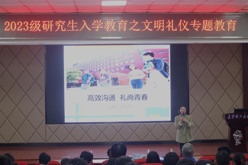 为提高学生的文明礼仪水平,培养学生高效沟通的能力,12月4日晚,水利与环境工程学院在文科楼A200开展2023级研究生入学教育之“高效沟通,礼尚青春”专题讲座。本次讲座由中南林业科技大学商学院党委副书记、湖南省高校第三届最美辅导员、国际注册高级礼仪培训师徐钰婷教授主讲,院党委副书记银波、院学工办老师参加。活动由研究生辅导员杜丘主持。