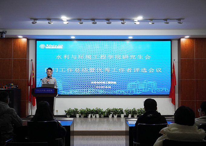 为总结院研究生会本学期工作,促进研究生会各部门之间的交流合作,2024年1月4日晚6点,水利学院于工三B319召开2023—2024年第一学期院研究生会第二次全体例会暨院研究生会“优秀工作者”评选会。此次会议由院研究生会负责人吴琼主持,研究生辅导员杜丘及研会全体成员参会。